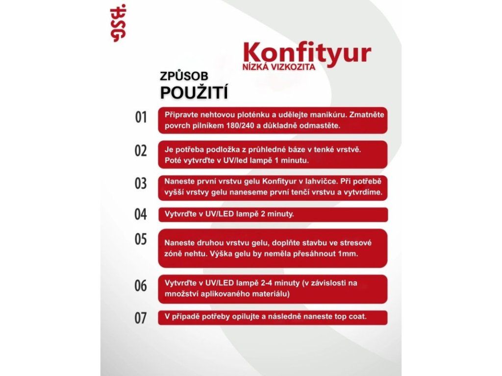 Unikátní produkt, který kombinuje vlastnosti gelového laku a tvrdého gelu, bezkonkurenční. "Konfityur" v lahvičce kombinuje tvrdost gelu na prodloužení nehtů s hustotou gellakové báze.