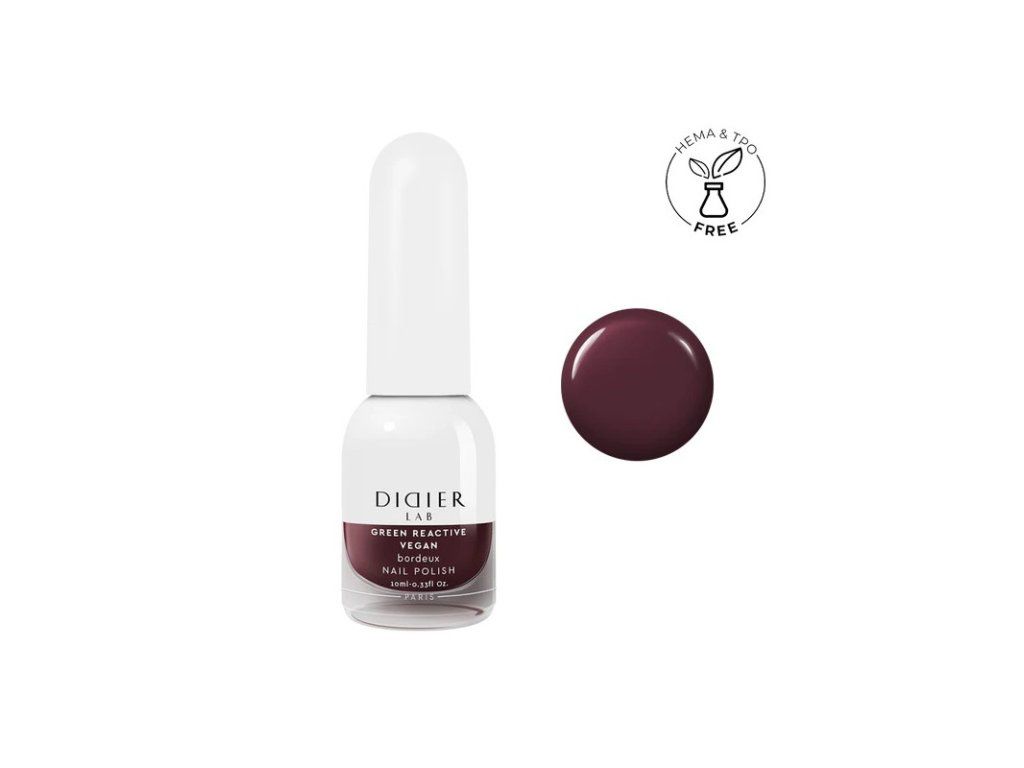 •pokud je váš přírodní nehet nerovný, můžete si povrch nehtu lehce vyhladit pěnovým pilníkem Nail Buffer grey 180/180 •pokud màte mastnější nebo potivé ruce, doporučujeme otřít nehet pomocí Dehydrátoru •naneste tenkou vrstvičku podkladové laku Vegan Bonding base coat a nechte zaschnout. Tento podkladový lak zabraňuje zabarvování přírodních nehtů od barevných laků •naneste první vrstvu barevného laku Vegan Green Reactive, počkejte dokud nezaschne. Nanášejte tenké vrstvy, aby došlo k rychlému uschnutí laku, čim silnější vrstvu nanesete, tím hůře a déle bude lak zasychat •naneste druhou vrstvu barvy Didier Lab Vegan Green Reactive. Počkejte dokud nezaschne. •nakonec přetřete vrchním lakem Top Coatem Didier Lab Green Reactive Vegan. Nechte dobře zaschnout.