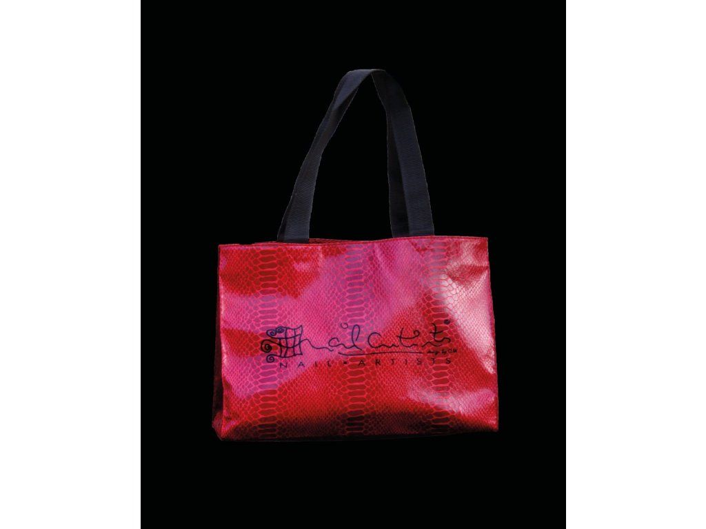 Látková taška s imitací hadí kůže a pevnými uchy.